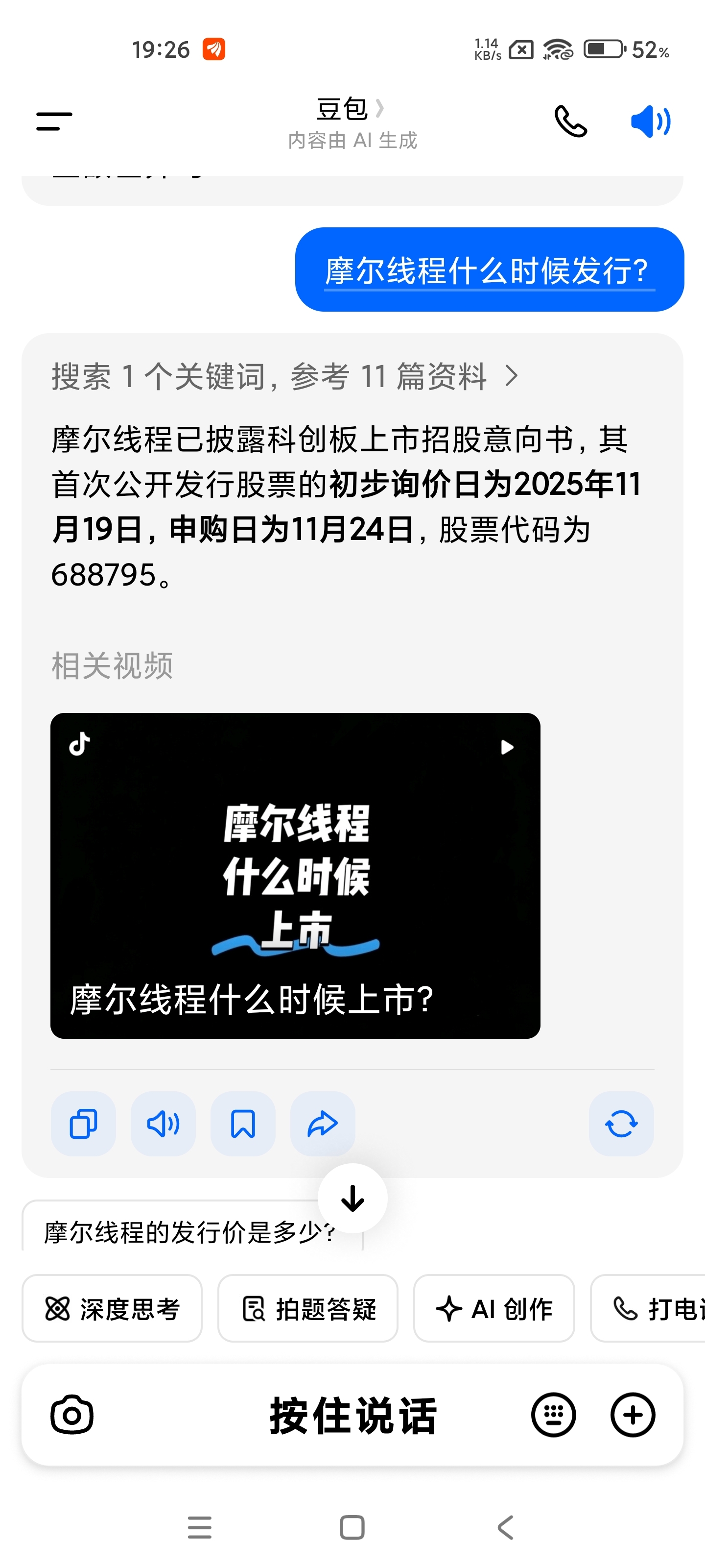 $大众公用(SH600635)$ 摩尔线程月低申购上市了。