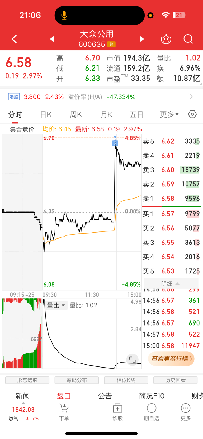 $大众公用(SH600635)$ 今天出了