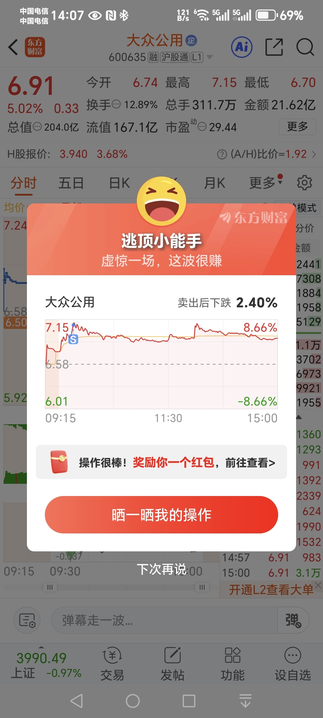 $大众公用(SH600635)$ 周一再买回来