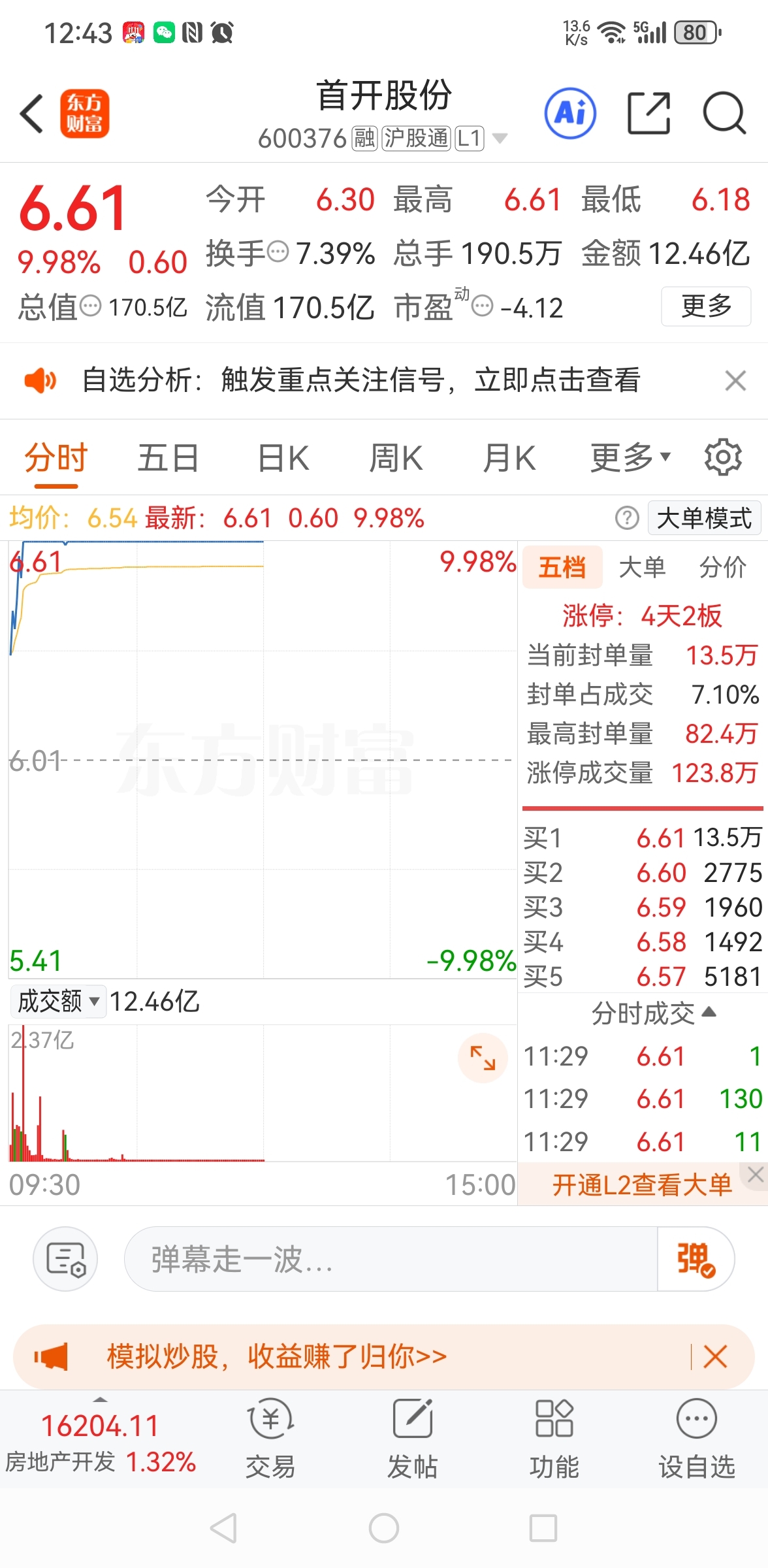 $大众公用(SH600635)$ 看看首开,都是宇树科技概念,没法比