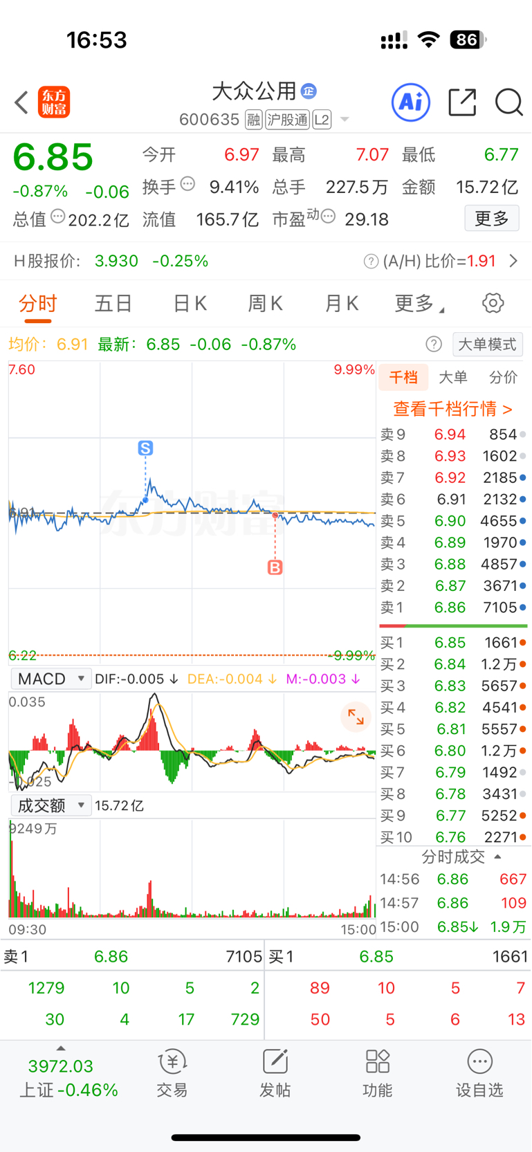 $大众公用(SH600635)$ 本来卖了,又给接回来了