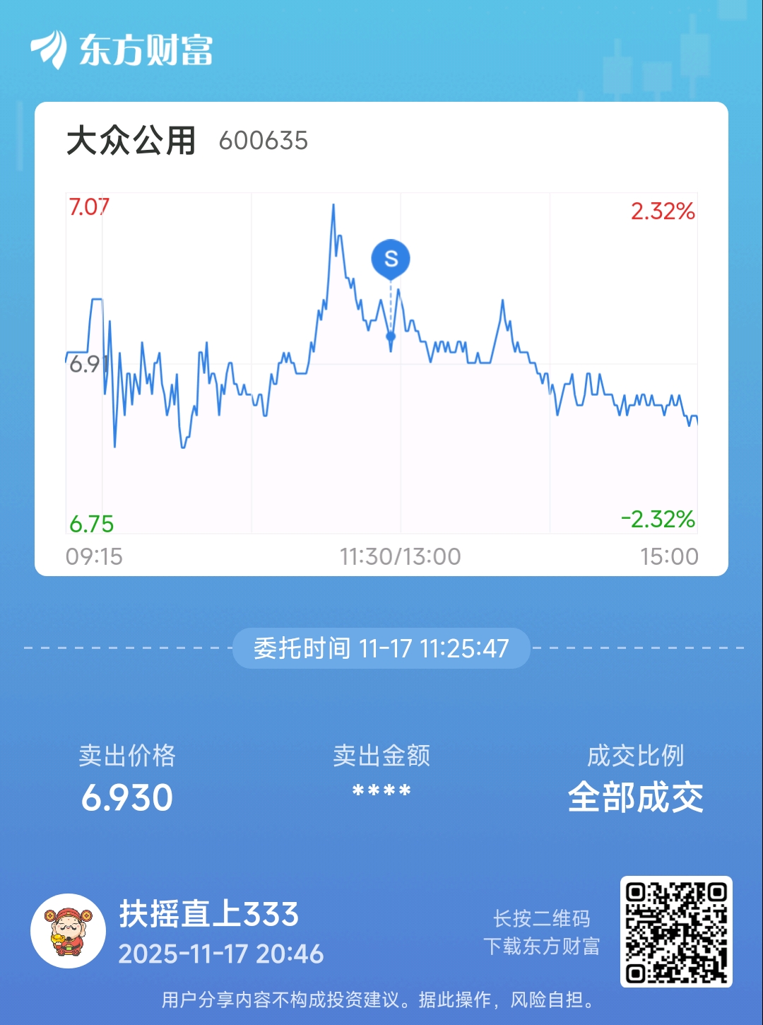 $大众公用(SH600635)$ 从负6点到正5点,谢谢,过两天,在回来