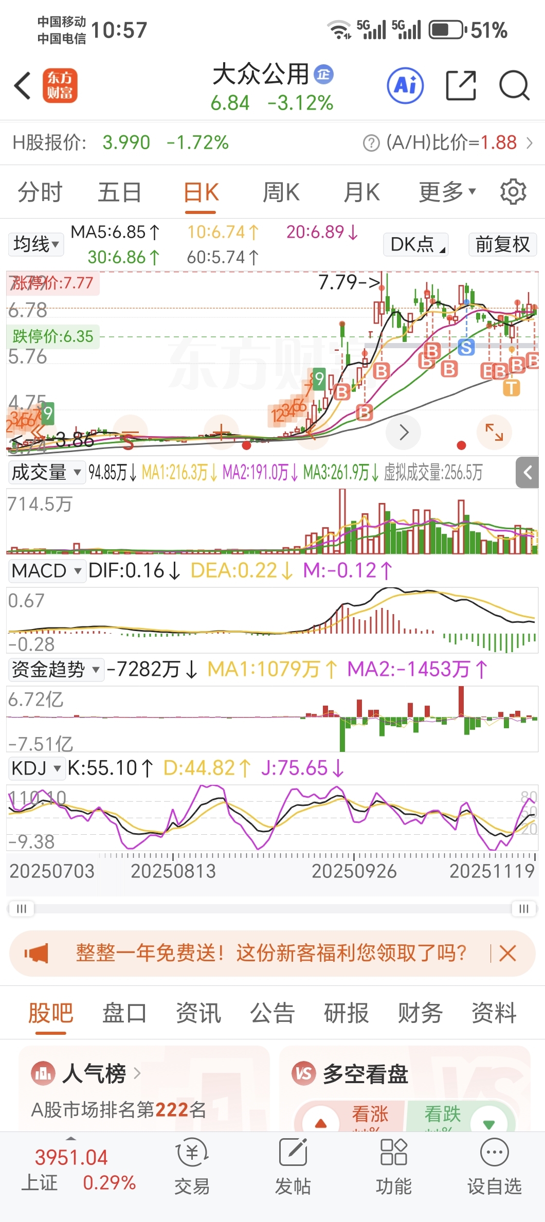 $大众公用(SH600635)$ 日线老鸭头形成初期,观察吧