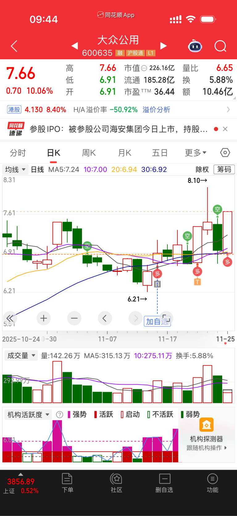 $大众公用(SH600635)$ 明天破8.1稳当了吧