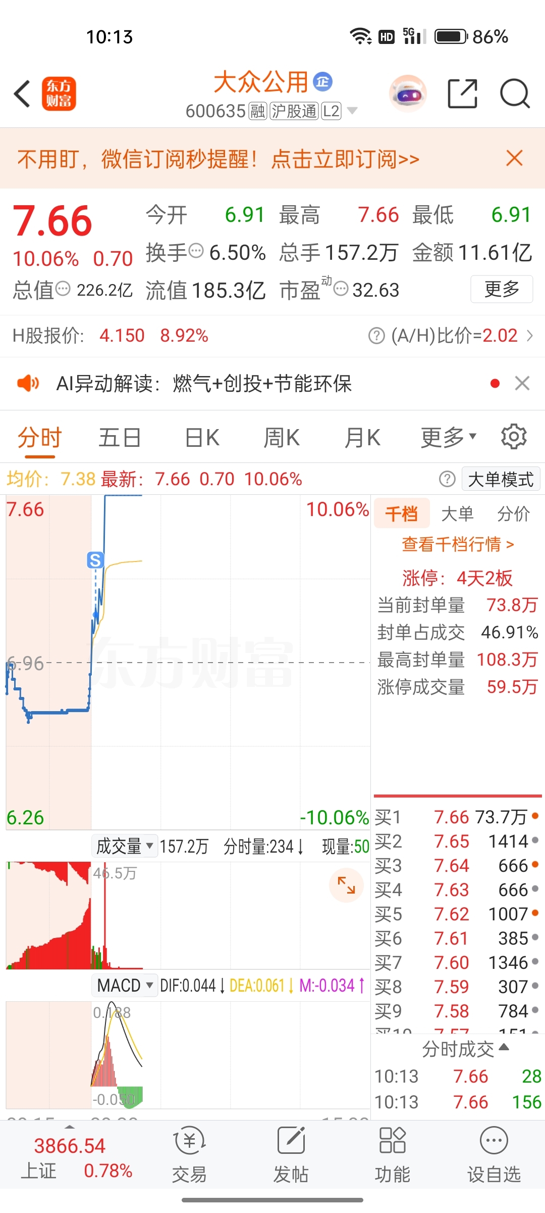 $大众公用(SH600635)$ 谁能有我惨?准备做t的把自己t没了,亏了十几个点都抗下来了,赚2个多点把自己t飞了