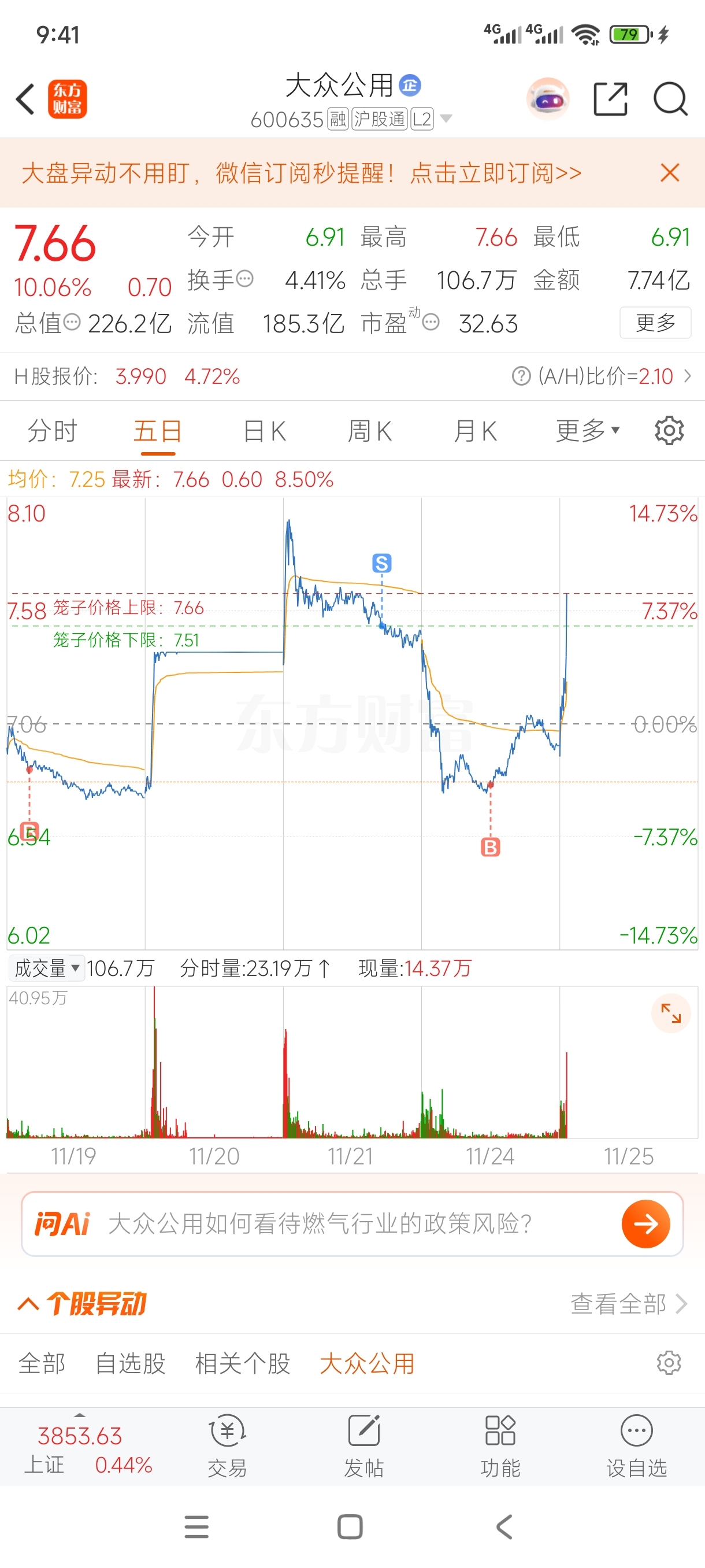 $大众公用(SH600635)$ 不及预期就要撤,低吸机会要把握