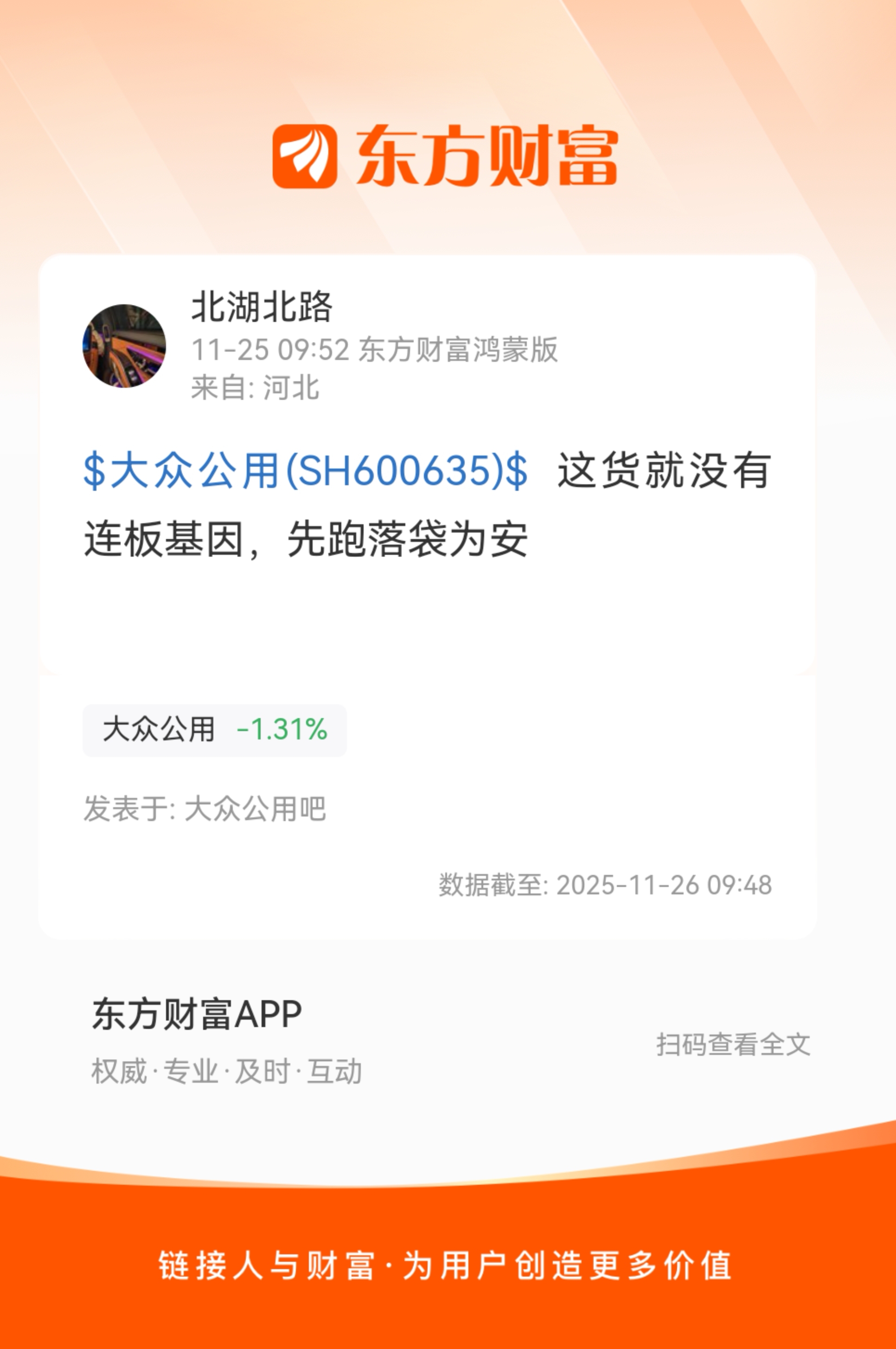 温馨提示: 1.根据《证券法》规定,禁止编造、传播虚假信息或者误导性信息,扰乱证券市场;2.用户在本社区发表的所有资料、言论等仅代表个人观点,与本网站立场无关,不对您构成任何投资建议。用户应基于自己的独立判断,自行决定证券投资并承担相应风险。《东方财富社区管理规定》