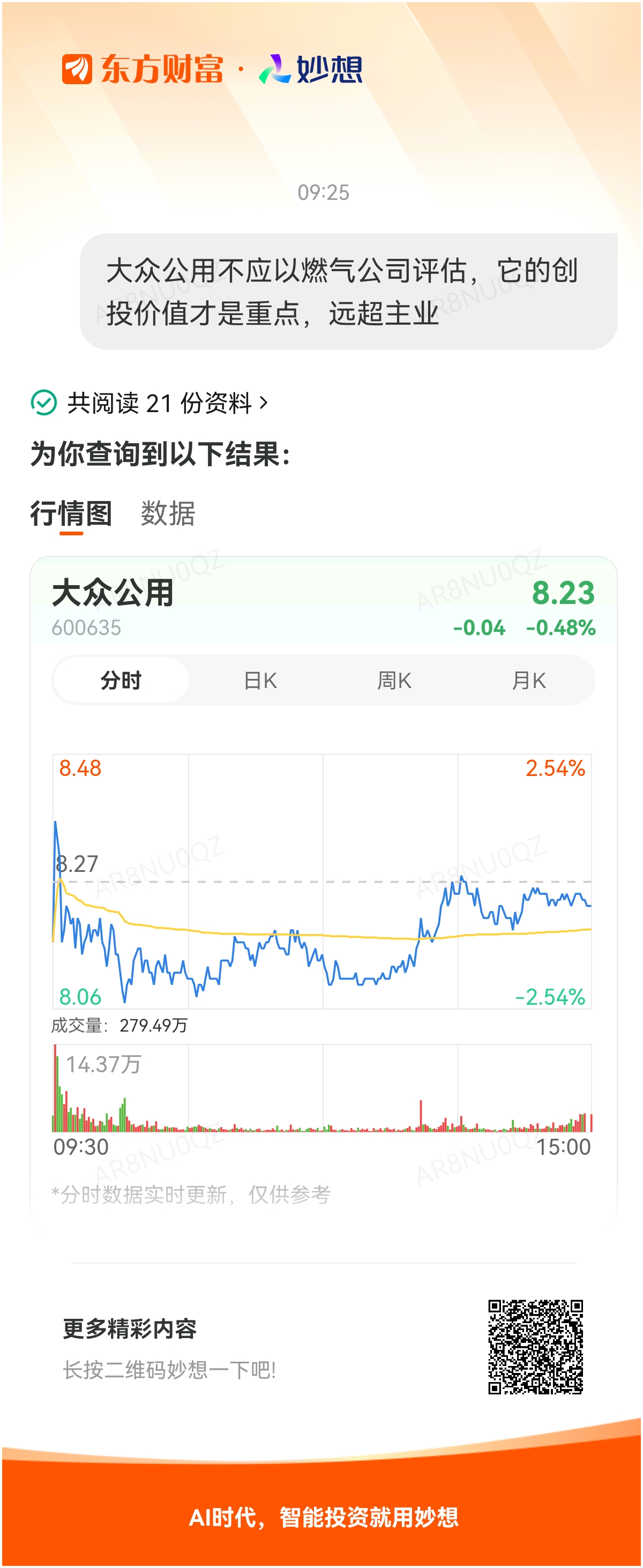 #@妙想,你怎么看?# 妙想一下:大众公用不应以燃气公司评估,它的创投价值才是重点,远超主业