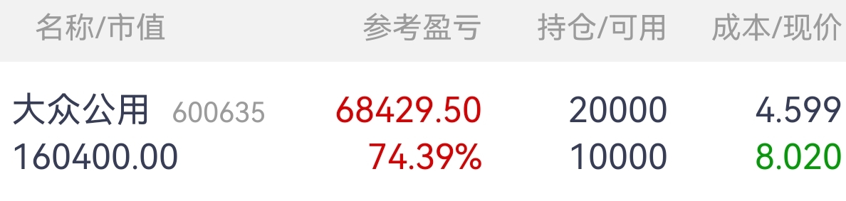 $大众公用(SH600635)$ 大众9月底买的,拿到现在,做了三四次T,现在成本4.5。不要猜来猜去,涨三五毛以上就卖,跌三五毛钱就卖。我就是这么朴素的想法。