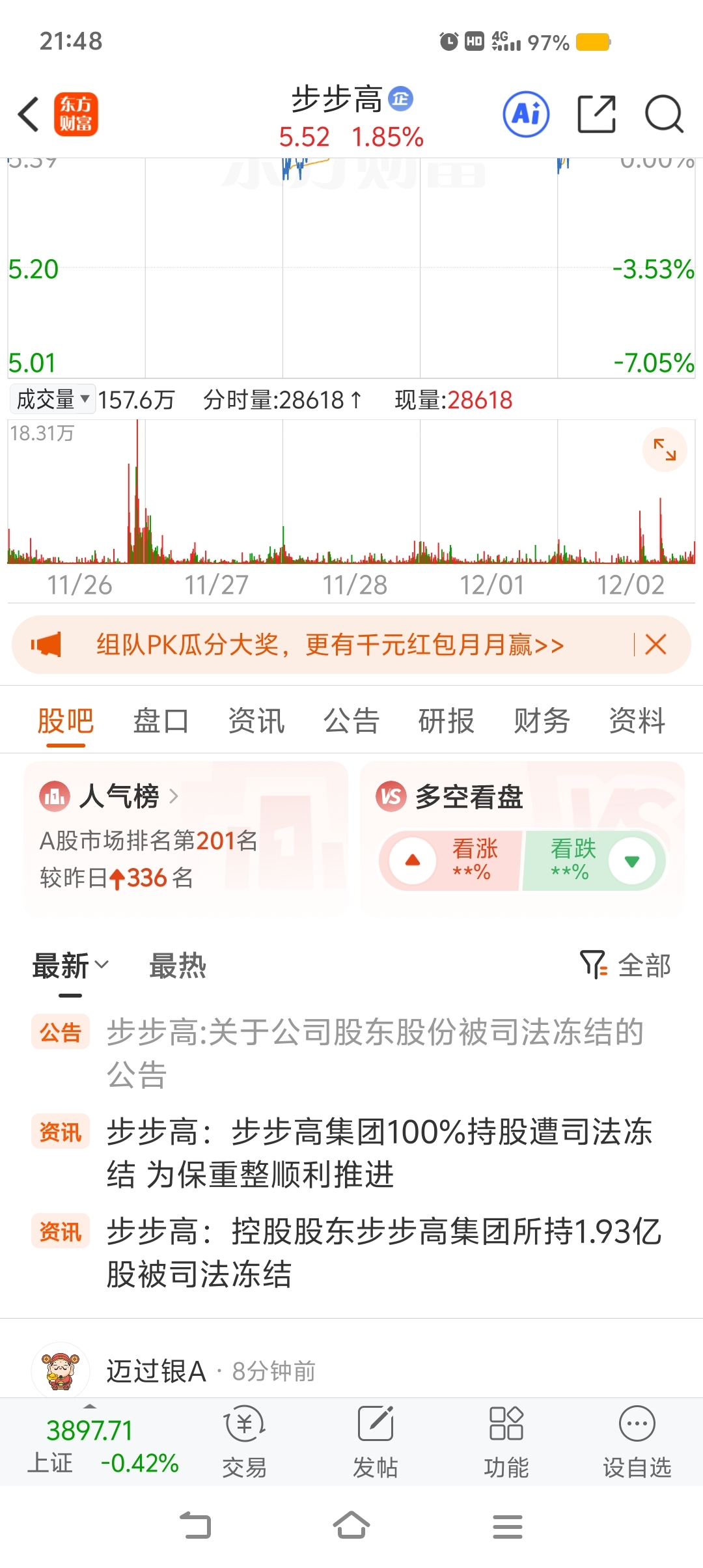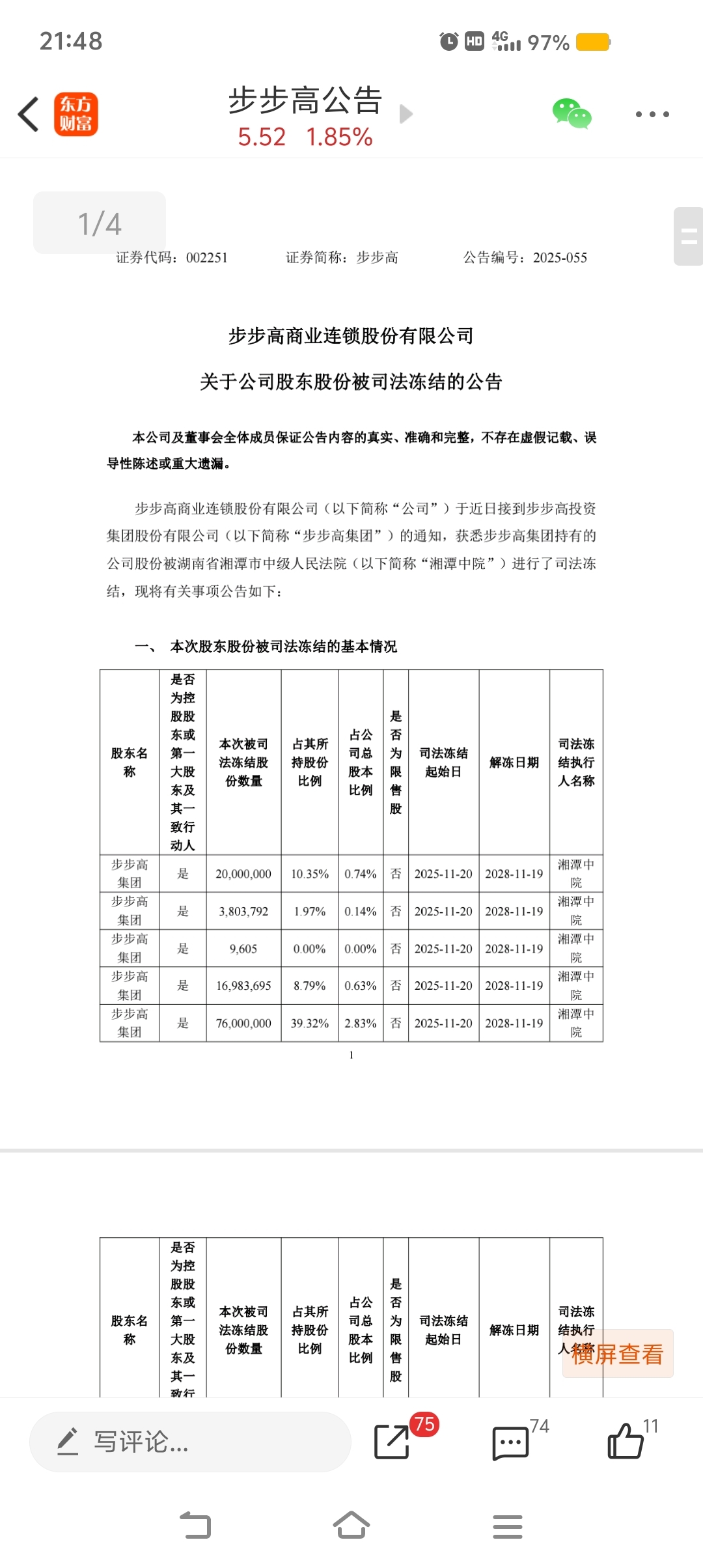 虽然看不上步步高,但比起唱多的,股权百分百冻结才是真正利好
