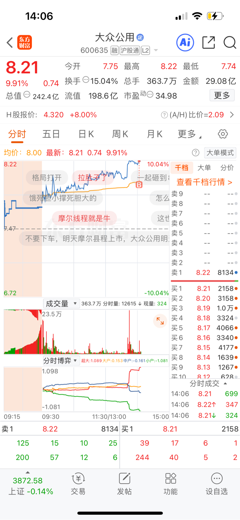 $大众公用(SH600635)$ 拍进来了? 出货了