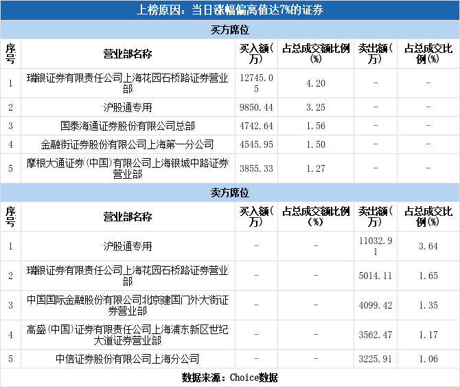 沪股通现身龙虎榜,大众公用涨停(12-04)