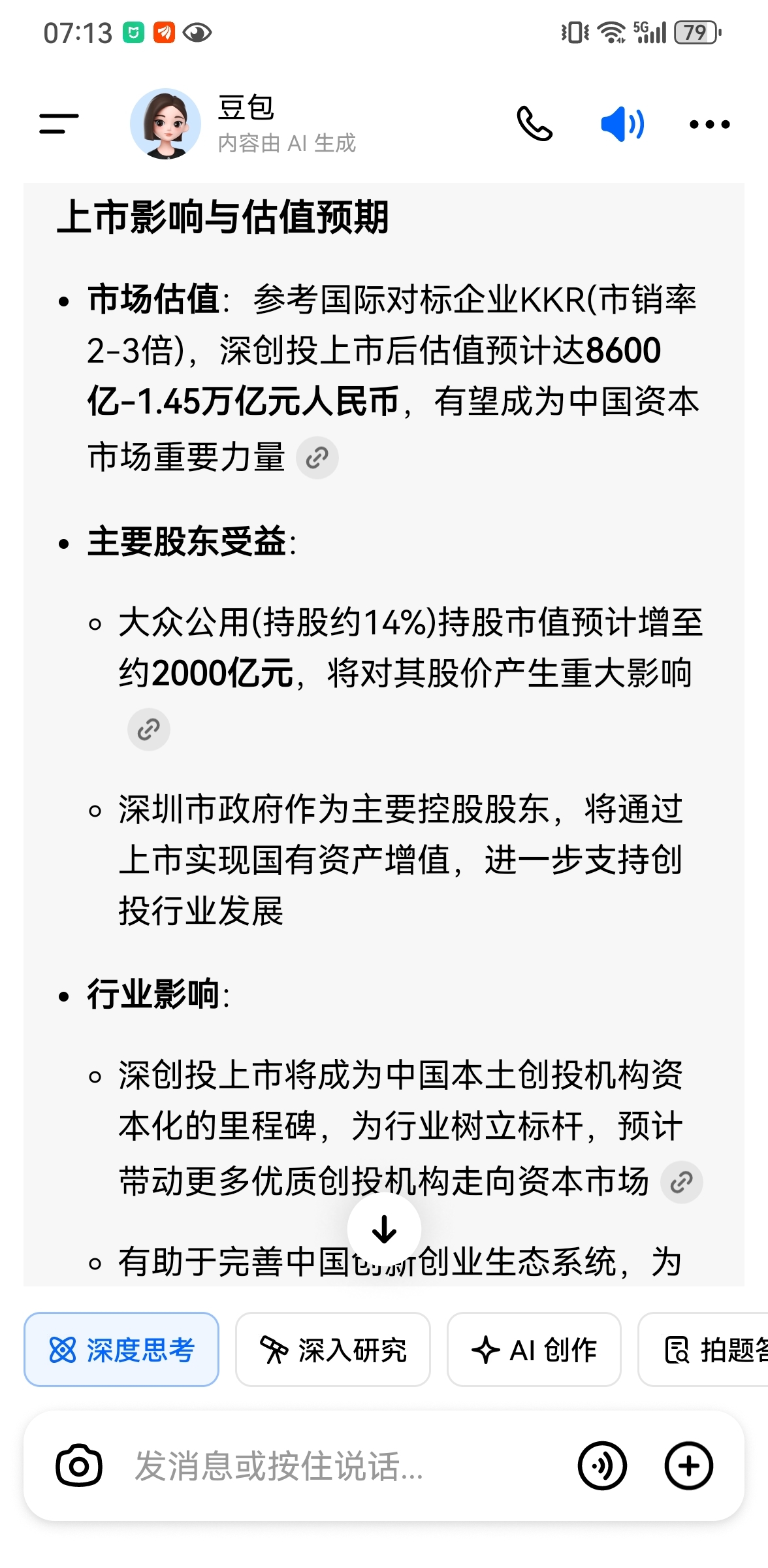 深创投1.5万亿市值已经启动IPO,几个月上市交易,大众公用持有百分之14股份,