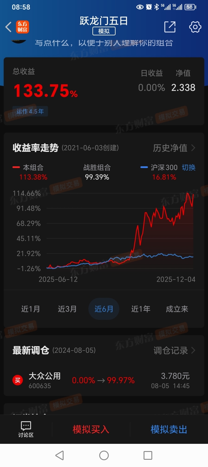 $大众公用(SH600635)$ 模拟盘的长线,虽然年收益不高,但很放心