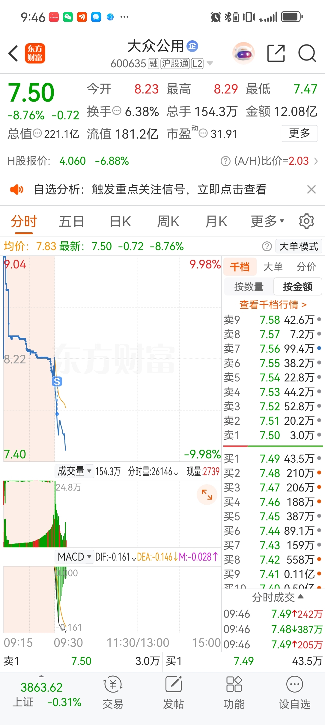 $大众公用(SH600635)$ 再也不来了,昨天买了大众赚了600,今天手慢了亏了老子800,一分没赚反而还倒贴200去倪嘛的,再也不来大众,全是量化收割。