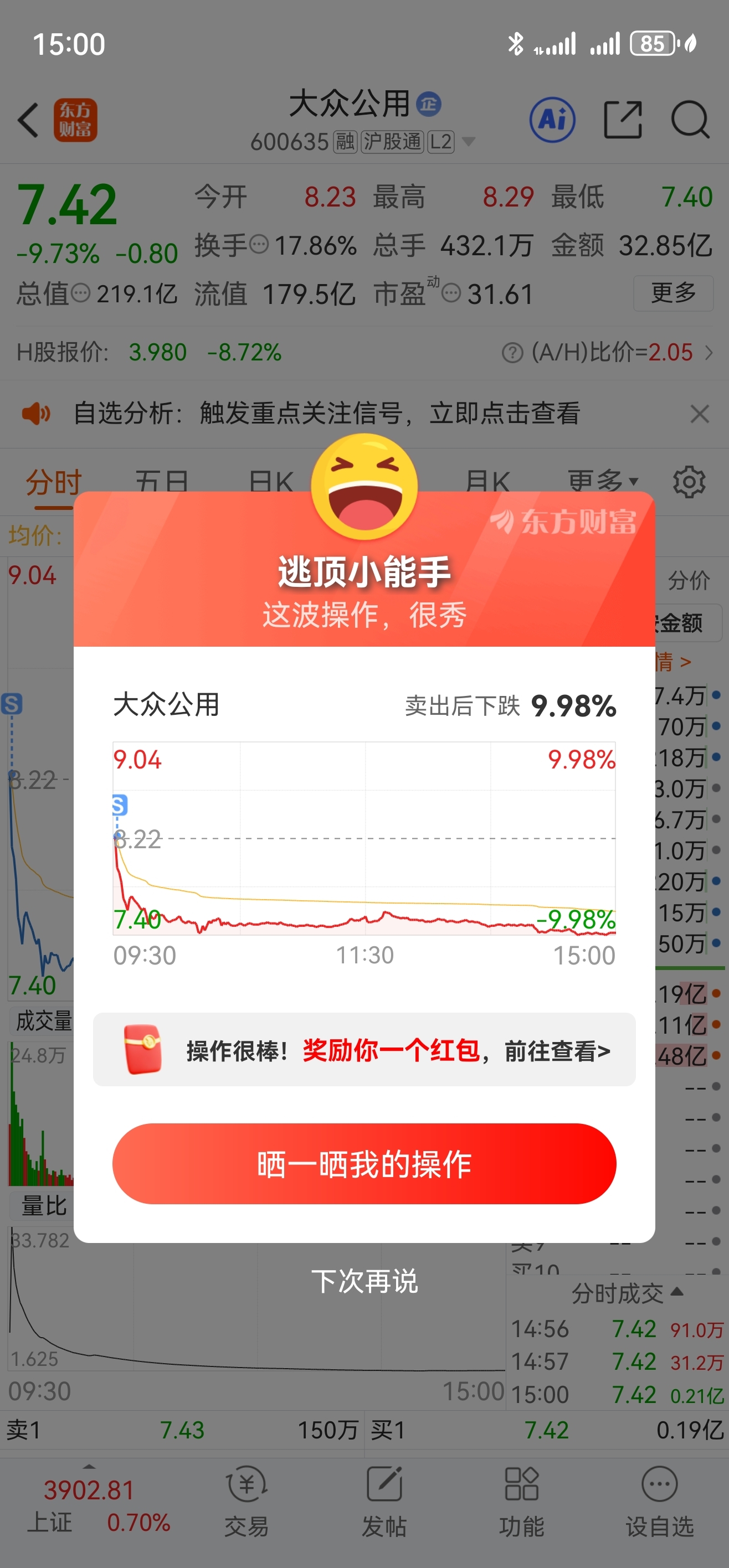 $大众公用(SH600635)$ 开盘就知道你今天要这么玩。套你猴子