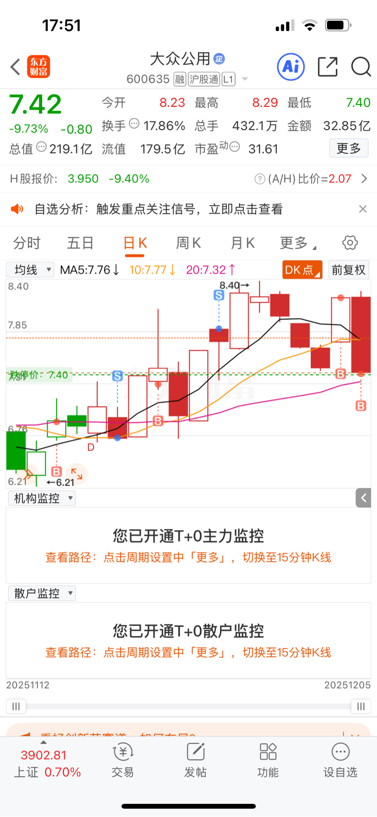 $大众公用(SH600635)$ 星期一上午T下今下午补仓的吧,希望早上开盘有点益价