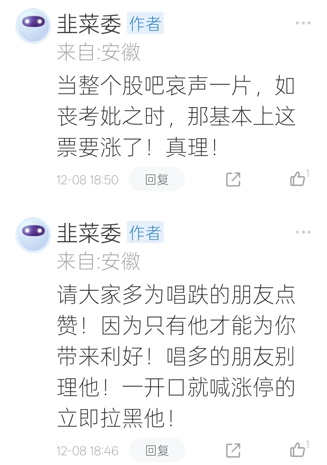 温馨提示: 1.根据《证券法》规定,禁止编造、传播虚假信息或者误导性信息,扰乱证券市场;2.用户在本社区发表的所有资料、言论等仅代表个人观点,与本网站立场无关,不对您构成任何投资建议。用户应基于自己的独立判断,自行决定证券投资并承担相应风险。《东方财富社区管理规定》