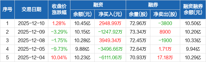 大众公用:融资净买入2948.99万元,融资余额10.45亿元(12-10)