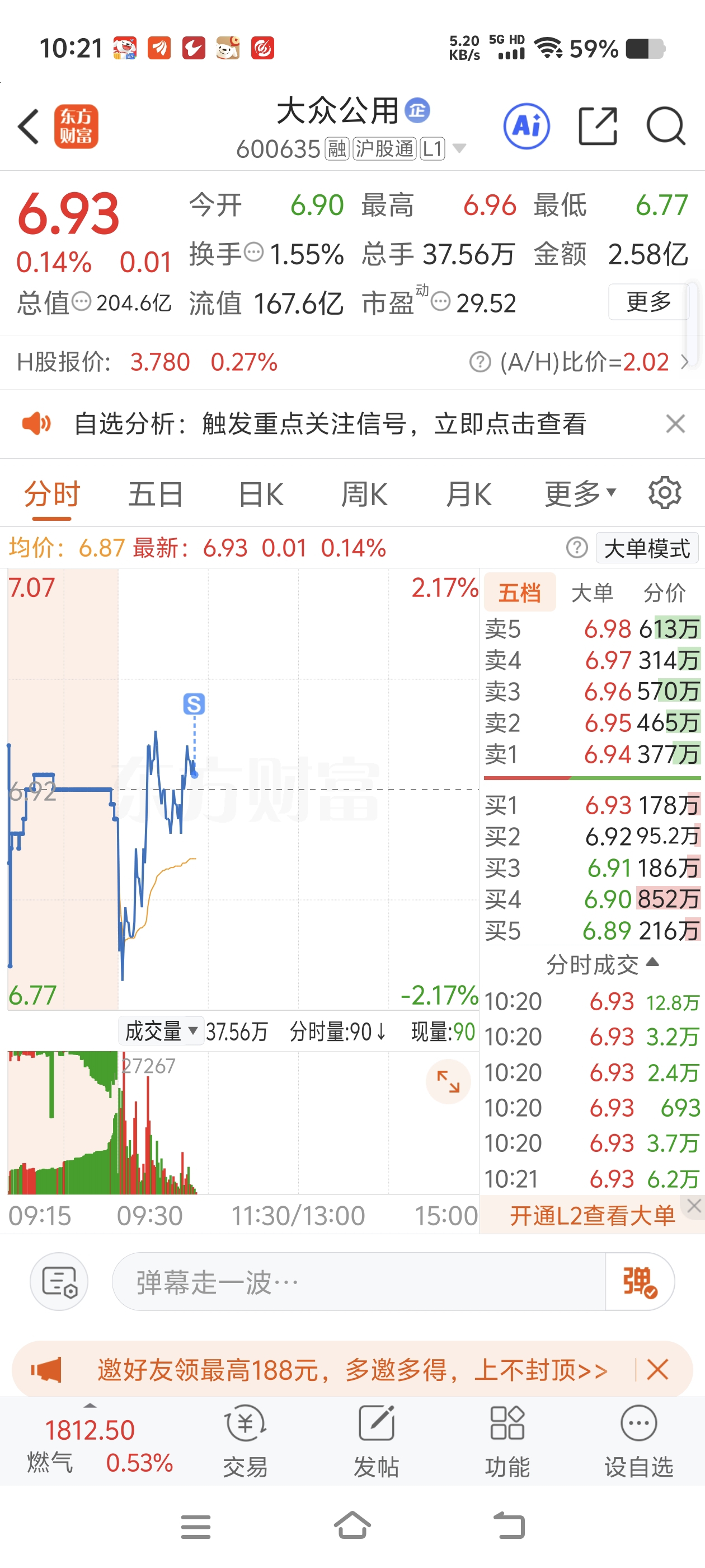 $大众公用(SH600635)$ 各位兄弟我先走了,顶不住了,祝里面的兄弟大涨