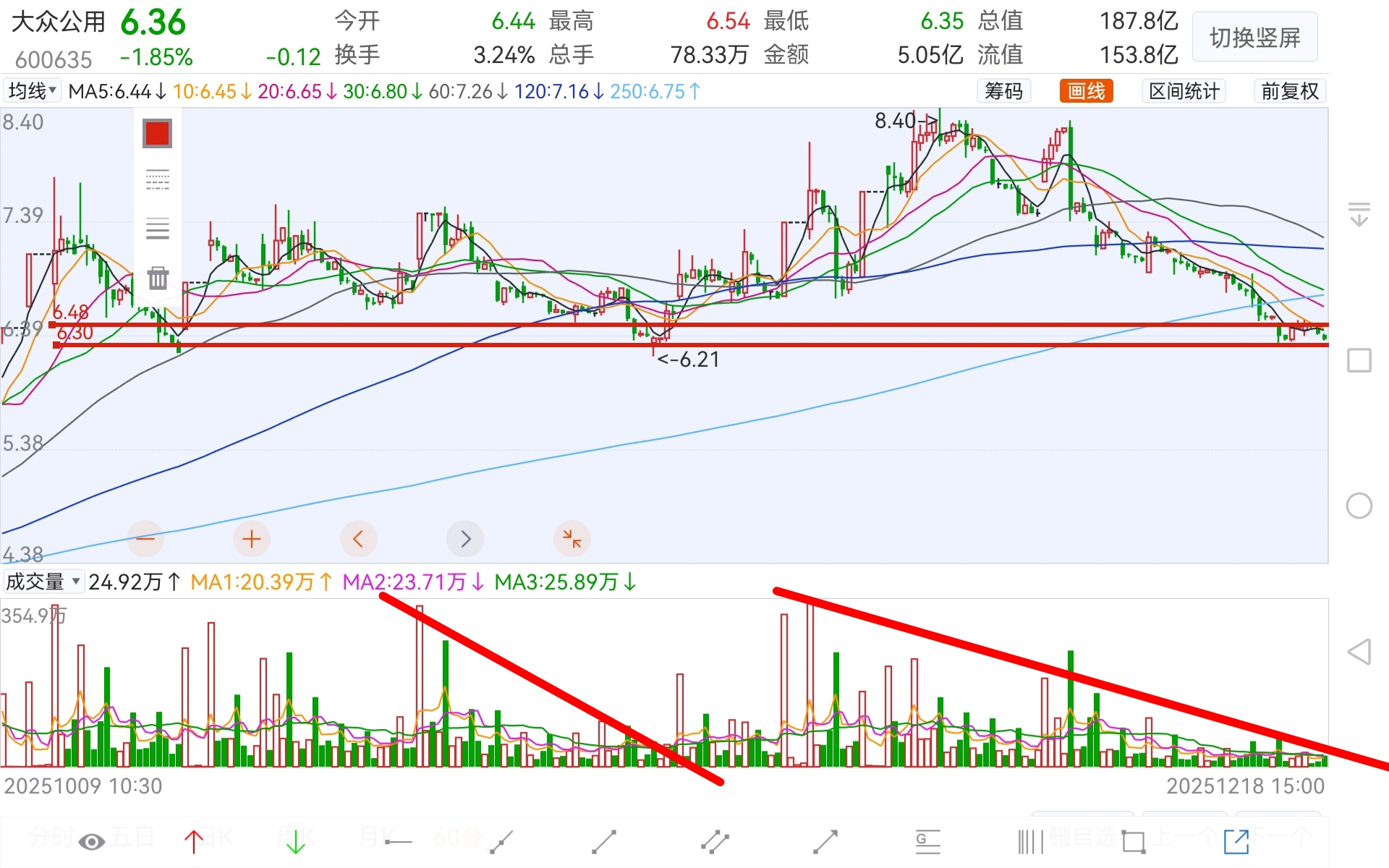 $大众公用(SH600635)$ 60分钟图谱