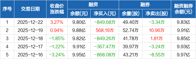 大众公用:融资净偿还849.68万元,融资余额9.8亿元(12-22)