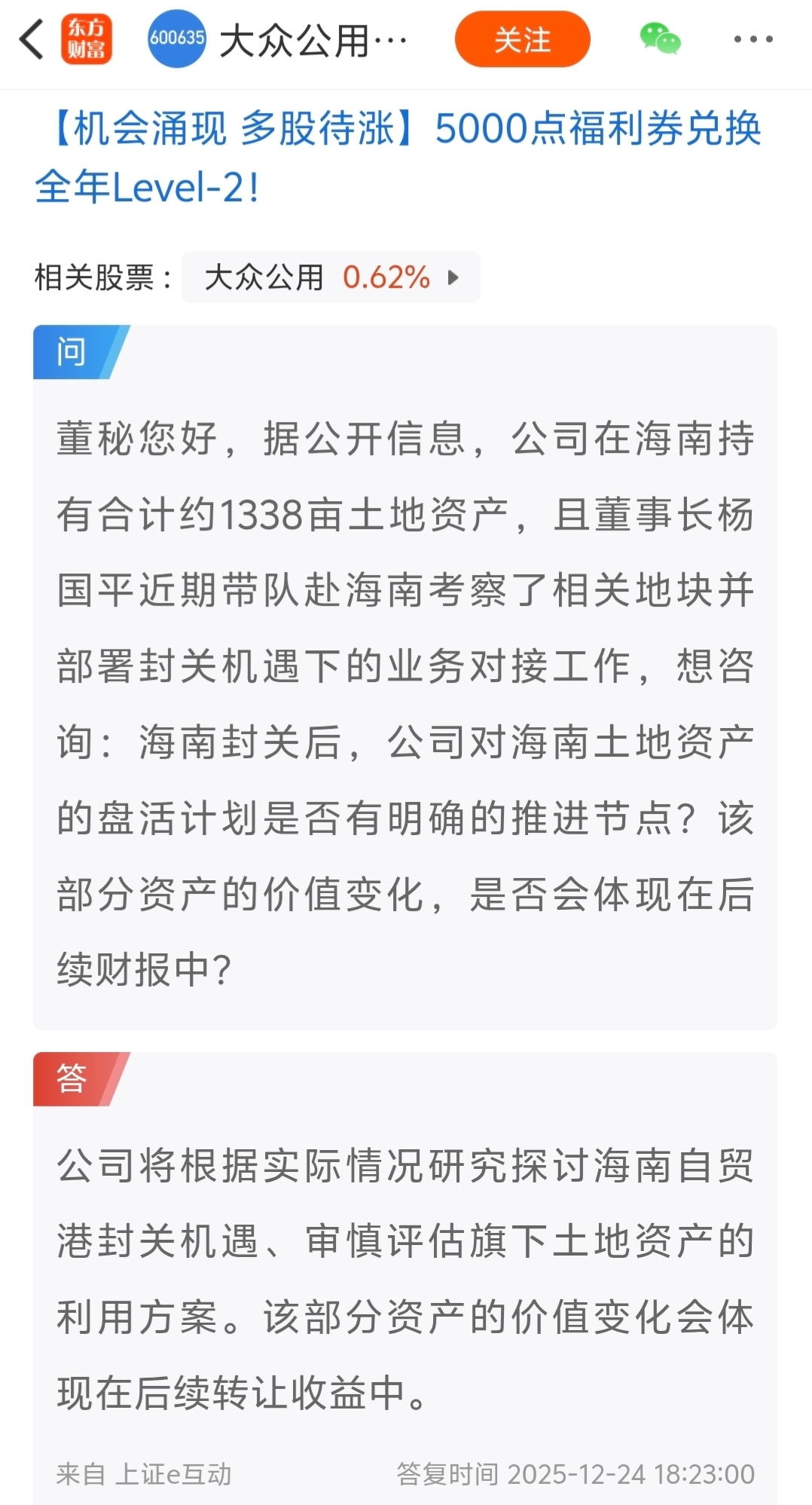 $大众公用(SH600635)$ 就等着这个土地增值体现到股价上了