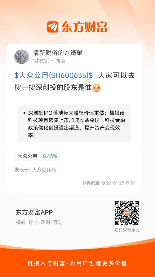 $大众公用(SH600635)$  大家可以去搜一搜深创投的股东是谁