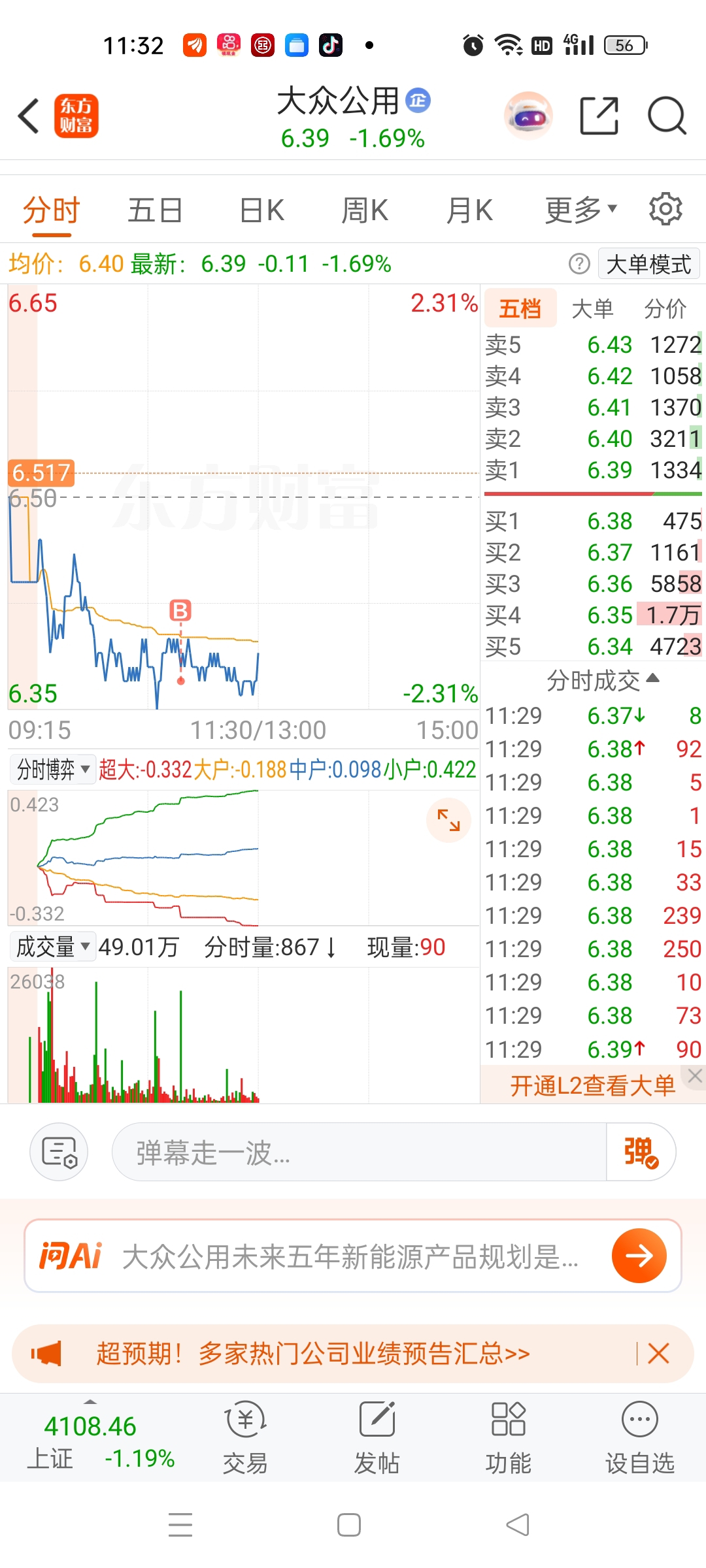 $大众公用(SH600635)$ 买到了