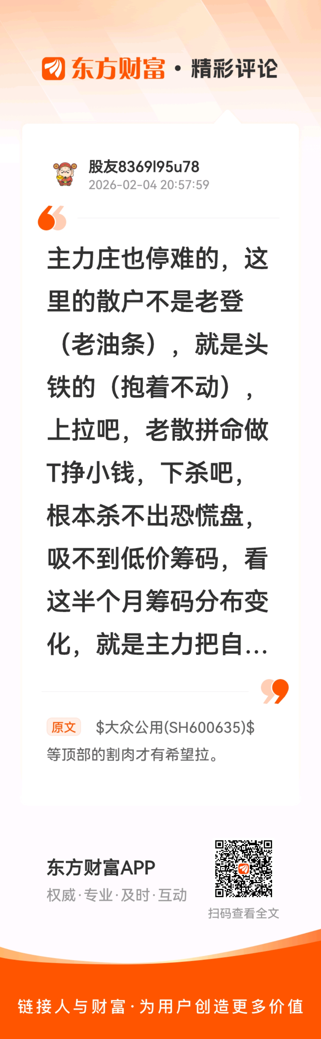 温馨提示: 1.根据《证券法》规定,禁止编造、传播虚假信息或者误导性信息,扰乱证券市场;2.用户在本社区发表的所有资料、言论等仅代表个人观点,与本网站立场无关,不对您构成任何投资建议。用户应基于自己的独立判断,自行决定证券投资并承担相应风险。《东方财富社区管理规定》