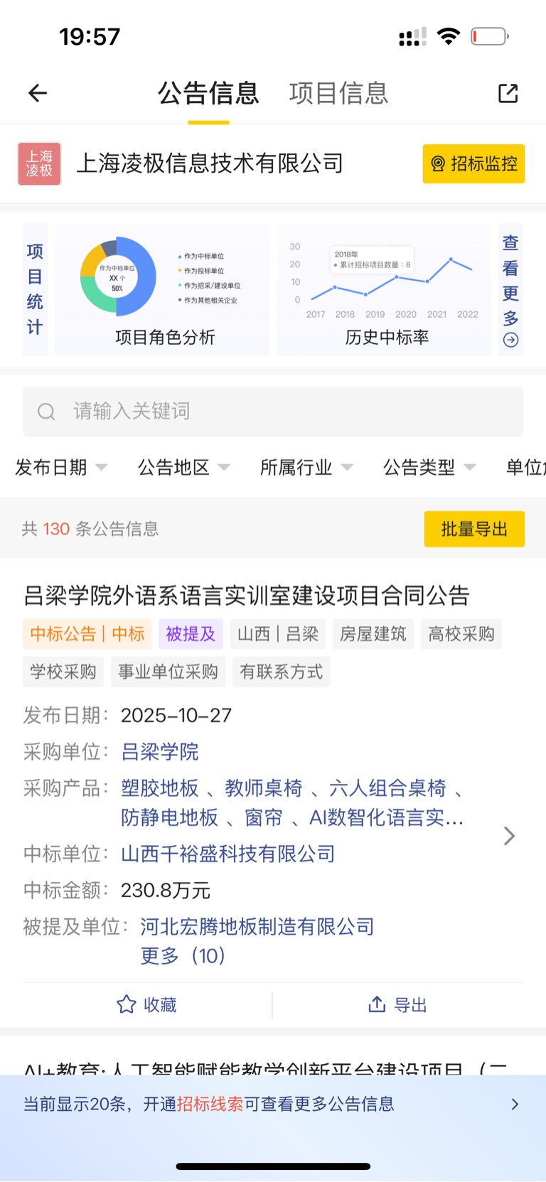 上海凌极软件有限公司成立于2003年,是专注于教育信息化的高新技术企业,提供智慧教育综合解决方案,其产品包括凌极云桌面、凌极多室合一教学软件等,从企业类型来看,上海凌极软件有限公司是有限责任公司,并非上市公司。