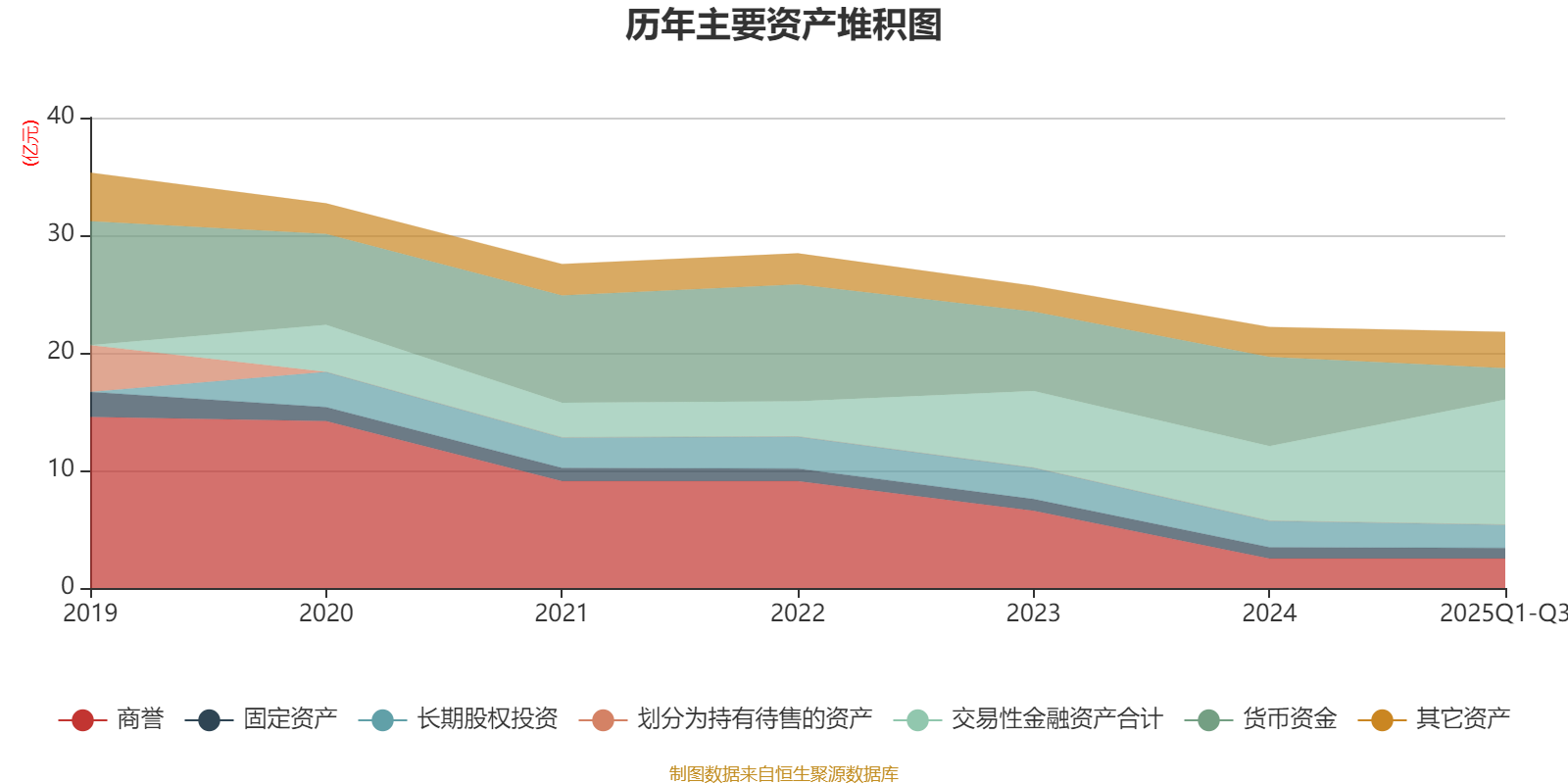 资产重大变化方面,截至2025年三季度末,公司货币资金较上年末减少64.91%,占公司总资产比重下降22个百分点;交易性金融资产合计较上年末增加67.88%,占公司总资产比重上升20.33个百分点;长期股权投资较上年末减少12.39%,占公司总资产比重下降1.09个百分点;衍生金融资产较上年末增加45.49%,占公司总资产比重上升0.96个百分点。
