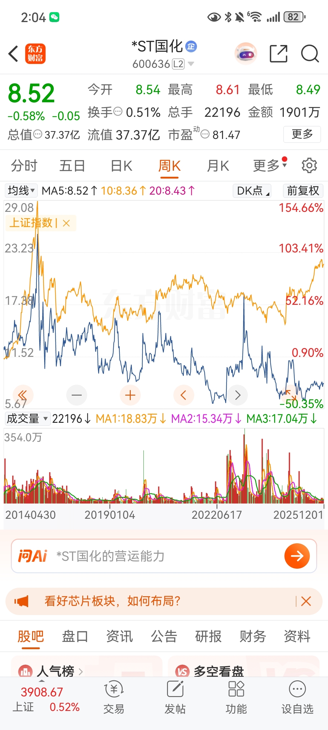 $*ST国化(SH600636)$ 作为一个央企,国新集团,看看这个月k线,简直惨不忍睹。毫无央企作为!!!