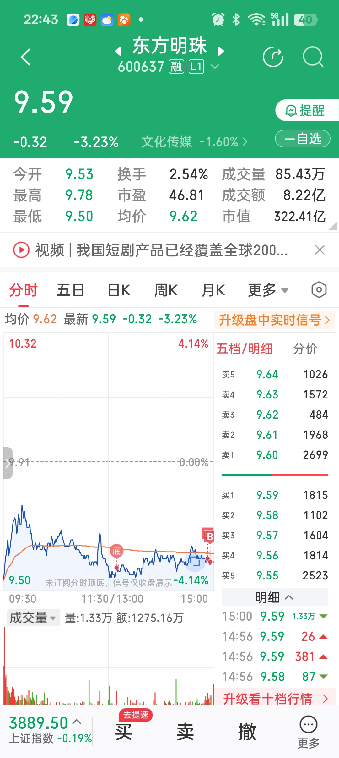 $东方明珠(SH600637)$ 9.59算不算对数,明天看能否再加?