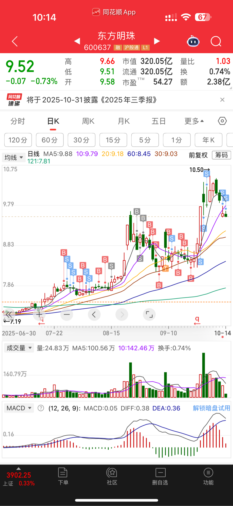 $东方明珠(SH600637)$ 清完了,跌到8.5,我在买你