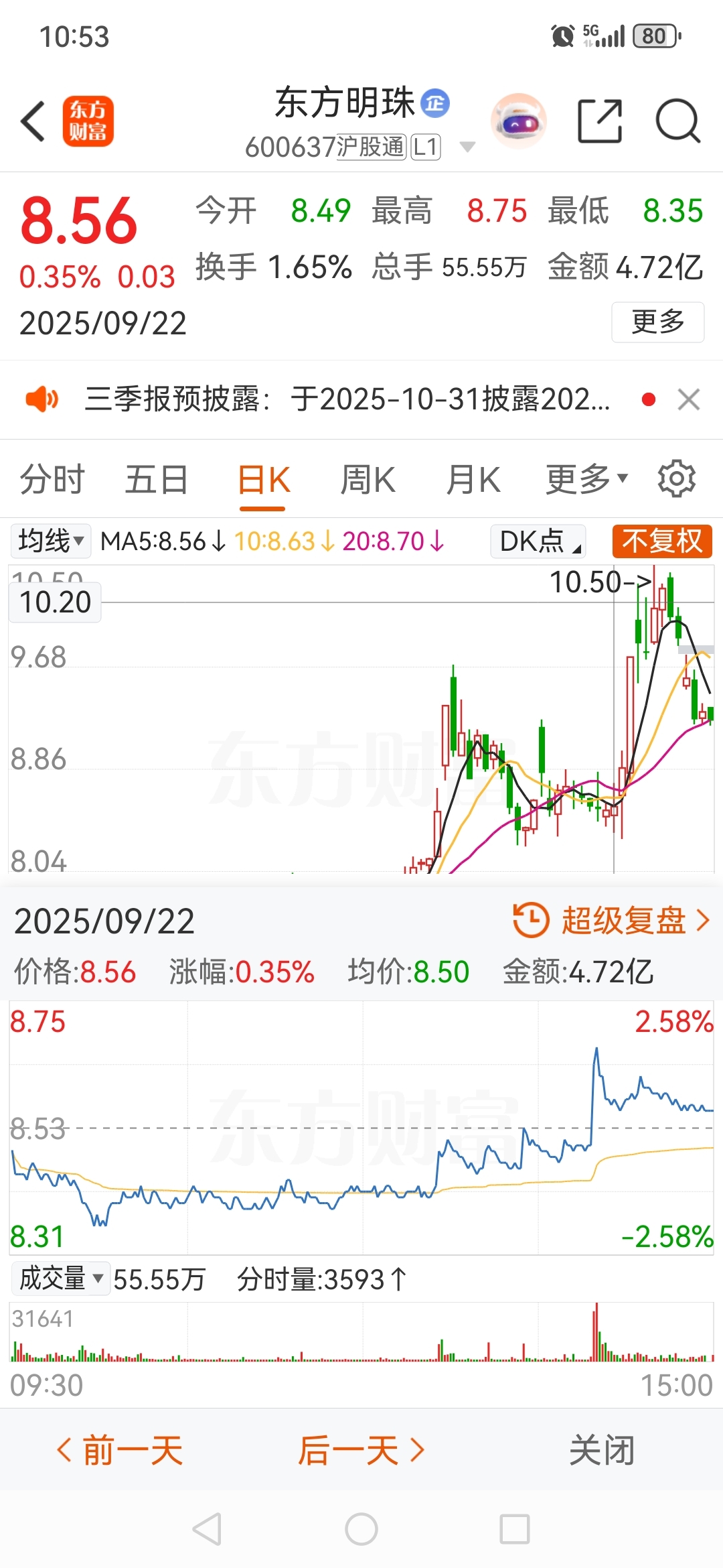 $东方明珠(SH600637)$ 似曾相识的分时图!