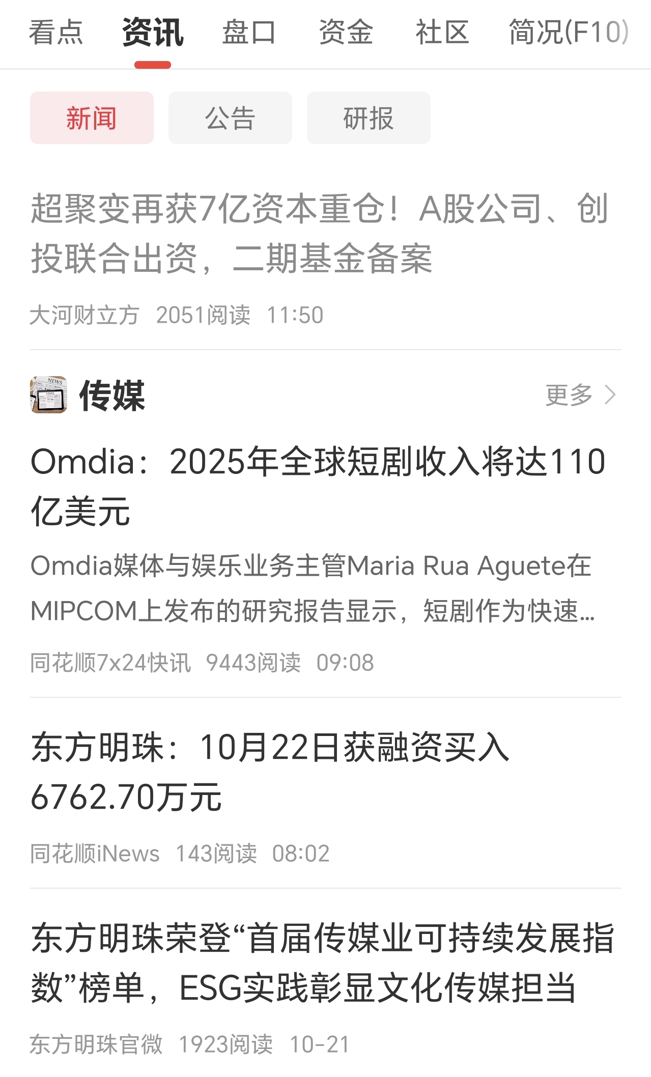 $东方明珠(SH600637)$ 同花顺资讯早就出来了,为何小财一点资讯都没有,故意的吗?