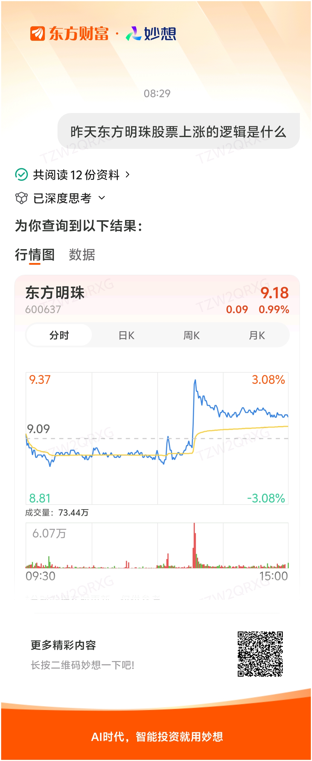 #@妙想,你怎么看?# 妙想一下:昨天东方明珠股票上涨的逻辑是什么