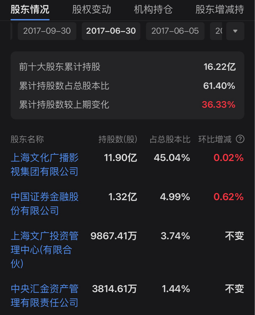 $东方明珠(SH600637)$ 证金公司比汇金更为激进,于2017年6月30日底加仓至举牌线4.99%,共计1.32亿股,按当时价格购入成本超30亿,成本在25元/股上下。
