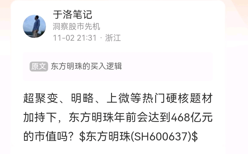 $东方明珠(SH600637)$ 东方明珠股价13.92元时对应市值468亿。