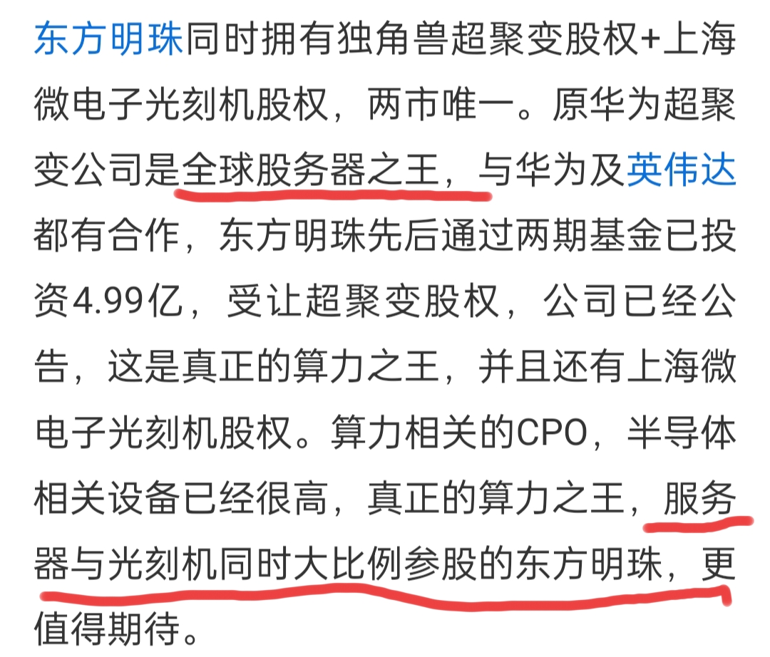 东方明珠全资子公司上海泰力持有光刻机上海微电子8.1218%的股权,东方明珠累计出资4.99亿元受让超聚变股权。超聚变估值远远超过摩尔 宇树。