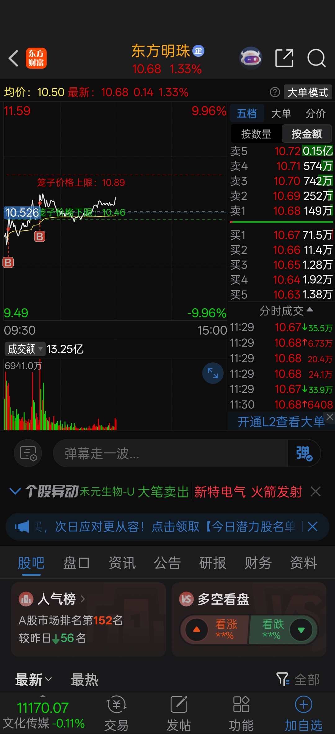 $东方明珠(SH600637)$ 下午再涨三到五个点就可以,把今天加仓T掉,操作完美