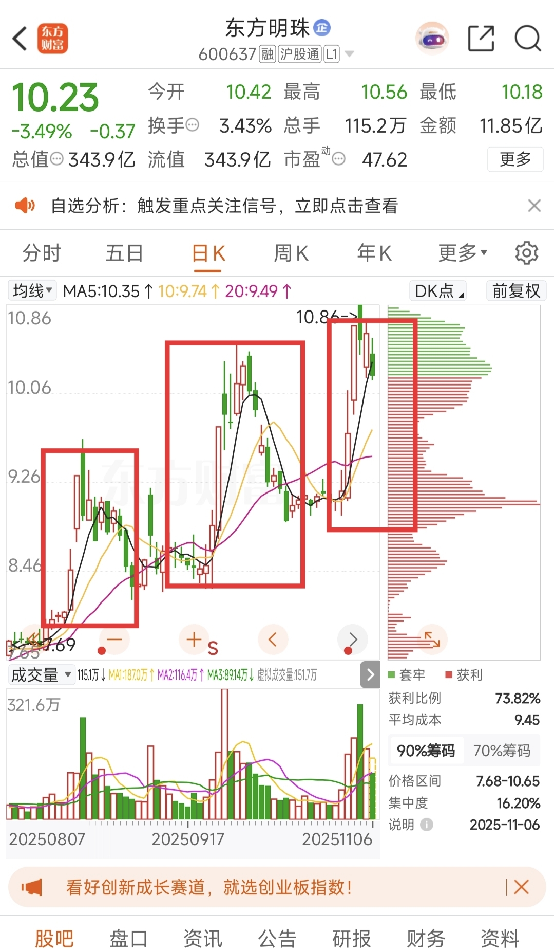 $东方明珠(SH600637)$ 出货中,每次都是两个中阳,就开始阴跌到起点,再上