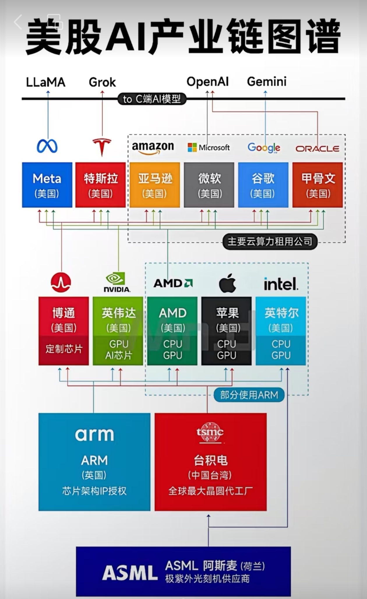 $东方明珠(SH600637)$ 对照下美股的AI产业链,不知不觉间,东方明珠几乎完成了对国产AI全产业链投资布局。