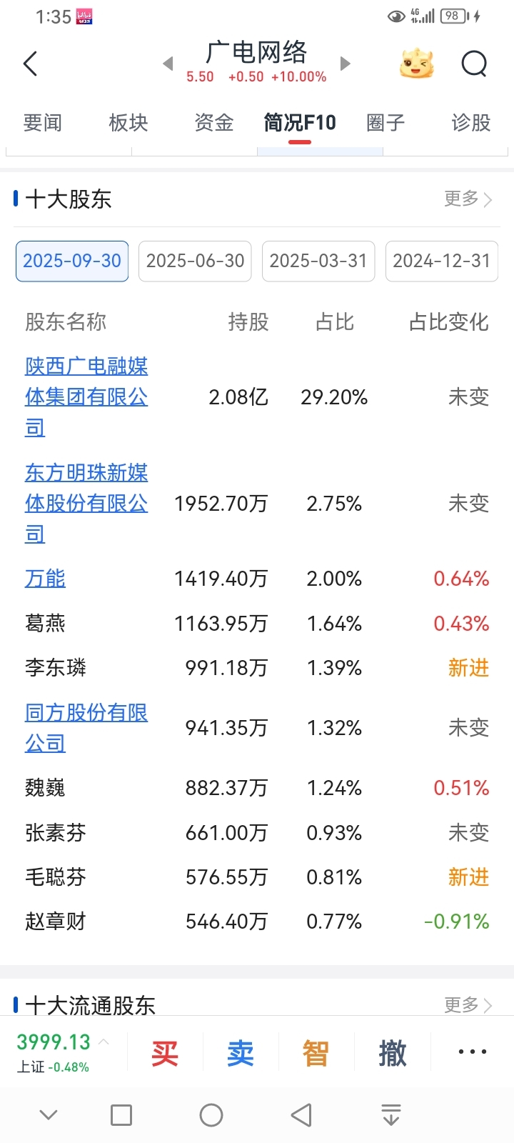 $东方明珠(SH600637)$ 二股东