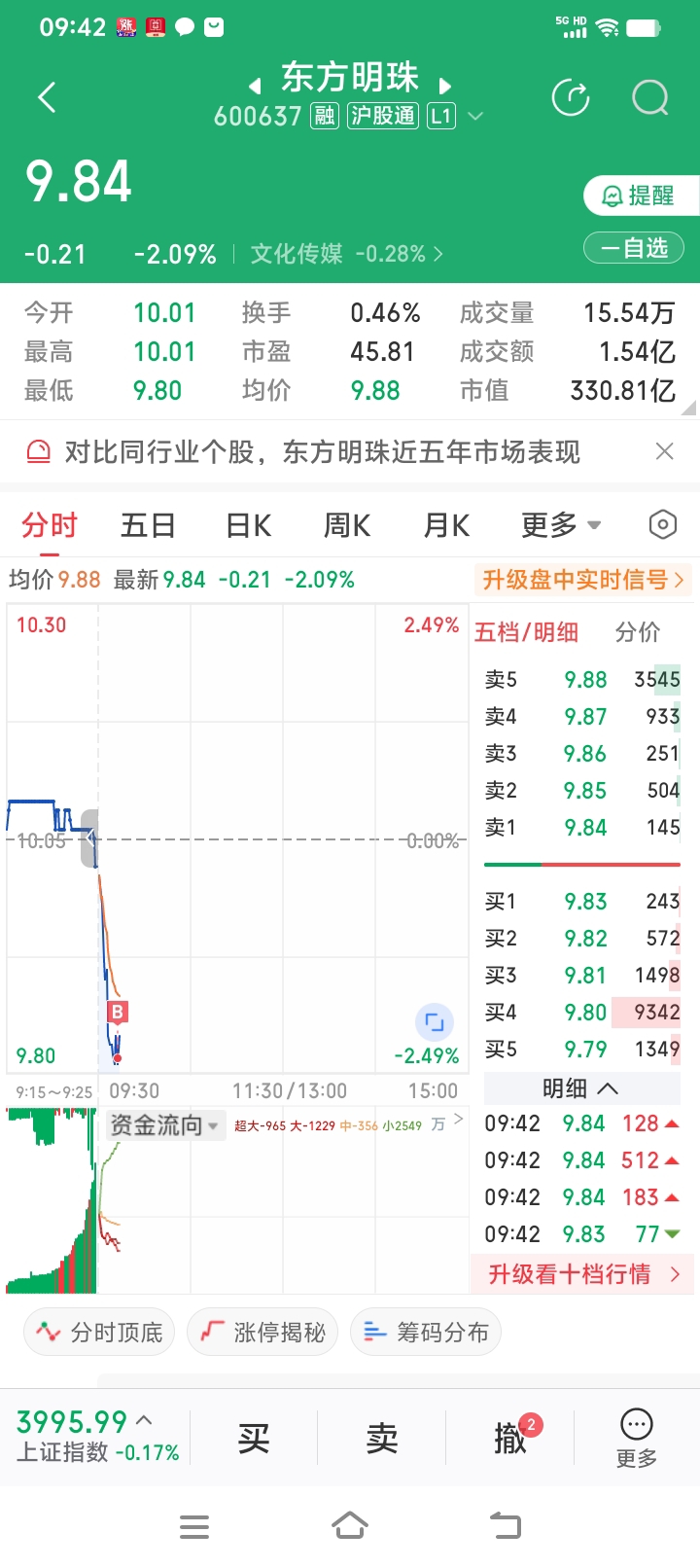 $东方明珠(SH600637)$ 前几天我卖明珠买康美。今天我回来看看明珠,跌吧!下跌不是罪,看这怂样我还是回来买一点。