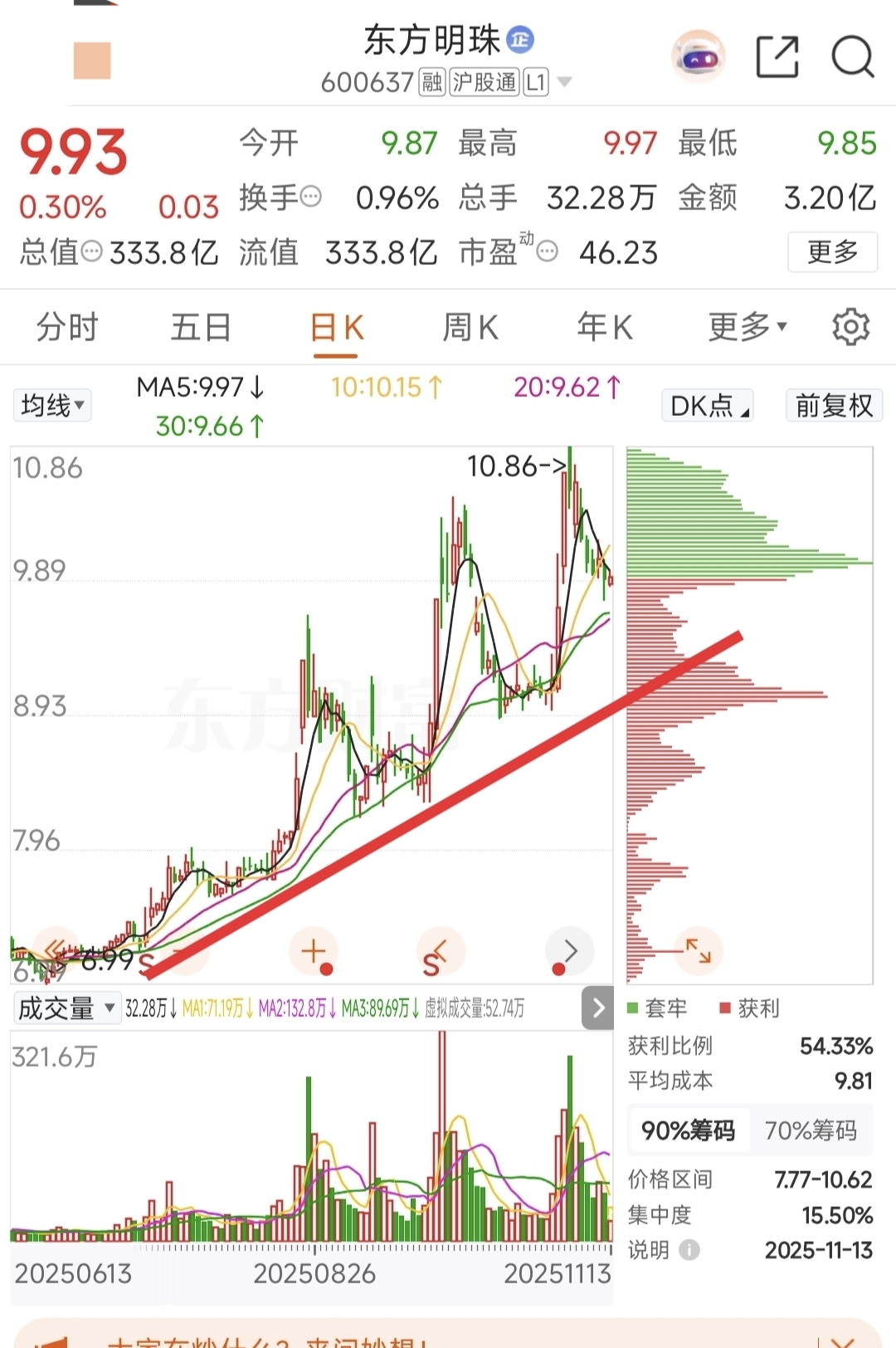 $东方明珠(SH600637)$ 长期看好,短期还得阴跌半个月