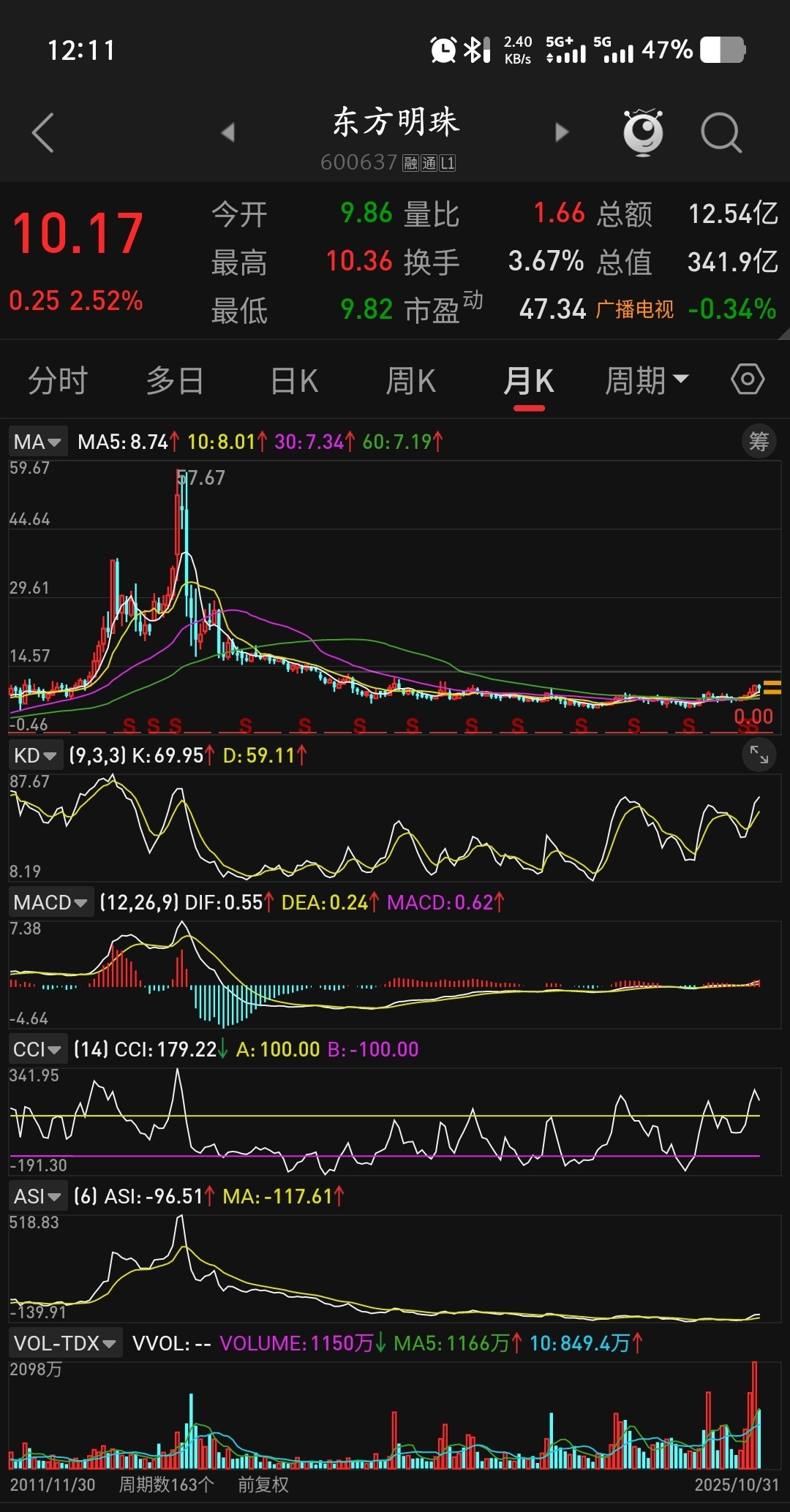 看看月线,600637东方明珠怎么有种翻倍再翻倍的趋势呢......