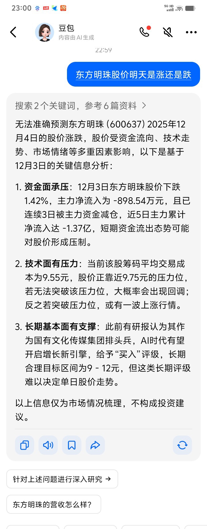 $东方明珠(SH600637)$ 我不知道股价短期的涨跌我问了一下豆包,豆包也不知道股价短期的涨跌。看样子豆包并不比我厉害