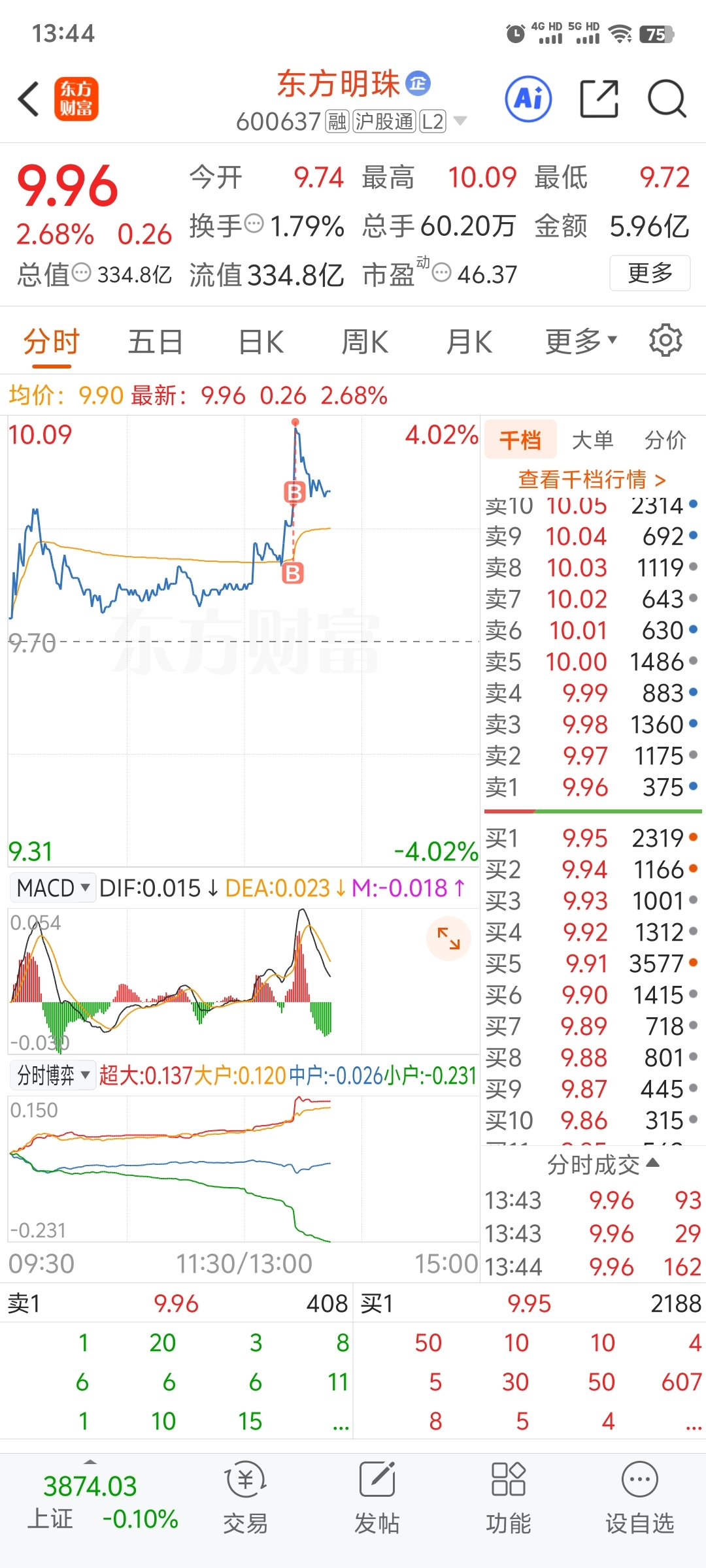 $东方明珠(SH600637)$ 全仓了 可以跌停了